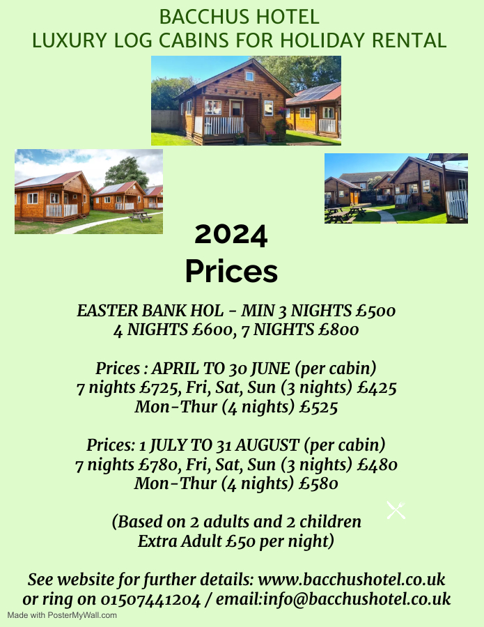 Our Luxury Log Cabin poster shown previously will usually reflect prices for the current year unless stated otherwise. Our 2025 prices are listed below. Note: Prices ex Bank Holidays. |